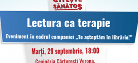 Citeşte sănătos! Lectura ca terapie – Eveniment în cadrul campaniei „Te așteptăm în librărie!” Marţi, 29 septembrie, 18:00-20:00 Ceainăria Cărtureşti Verona, Strada Pictor Arthur Verona, 13-15, București „Cărțile sunt instrumente de evoluție și introspecție personală, nu doar instrumente de evadare din cotidian.” – Cristina Drăgulin Editura Herald vă propune să redescoperiţi plăcerea lecturii şi frumuseţea cărţilor, marţi, 29 septembrie, în intervalul orar …